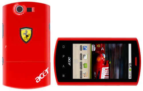 Acer telah mengumumkan Liquid E Ferrari mobile phone, smartphone ini berjalan pada sistem operasi Android 2.1 Eclair. Liquid E Ferrari mobile phone memiliki layar warna high-definition 3,5-inci (WVGA) touchscreen TFT 262.144 dengan resolusi 800 × 480 piksel. Acer Liquid E Ferrari mobile phone ini dilengkapi fitur kamera 5 Megapixel autofocus dengan geo-tagging dan rekaman video pada resolusi 480 x 640 20 fps.